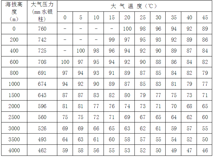 2、如果外界氣壓、氣溫、濕度等上述標(biāo)準(zhǔn)情況下,則應(yīng)按下列附表中所列的修正系數(shù)加以修正,即實(shí)際功率應(yīng)等于標(biāo)準(zhǔn)乘以修正系數(shù)c。下列兩表分別為50%及100%相對濕度下各種氣、氣溫情況的修正系數(shù)c如溫度為其他數(shù)值時,可利用插入法根據(jù)此二表計(jì)算出相應(yīng)的修正系數(shù)。